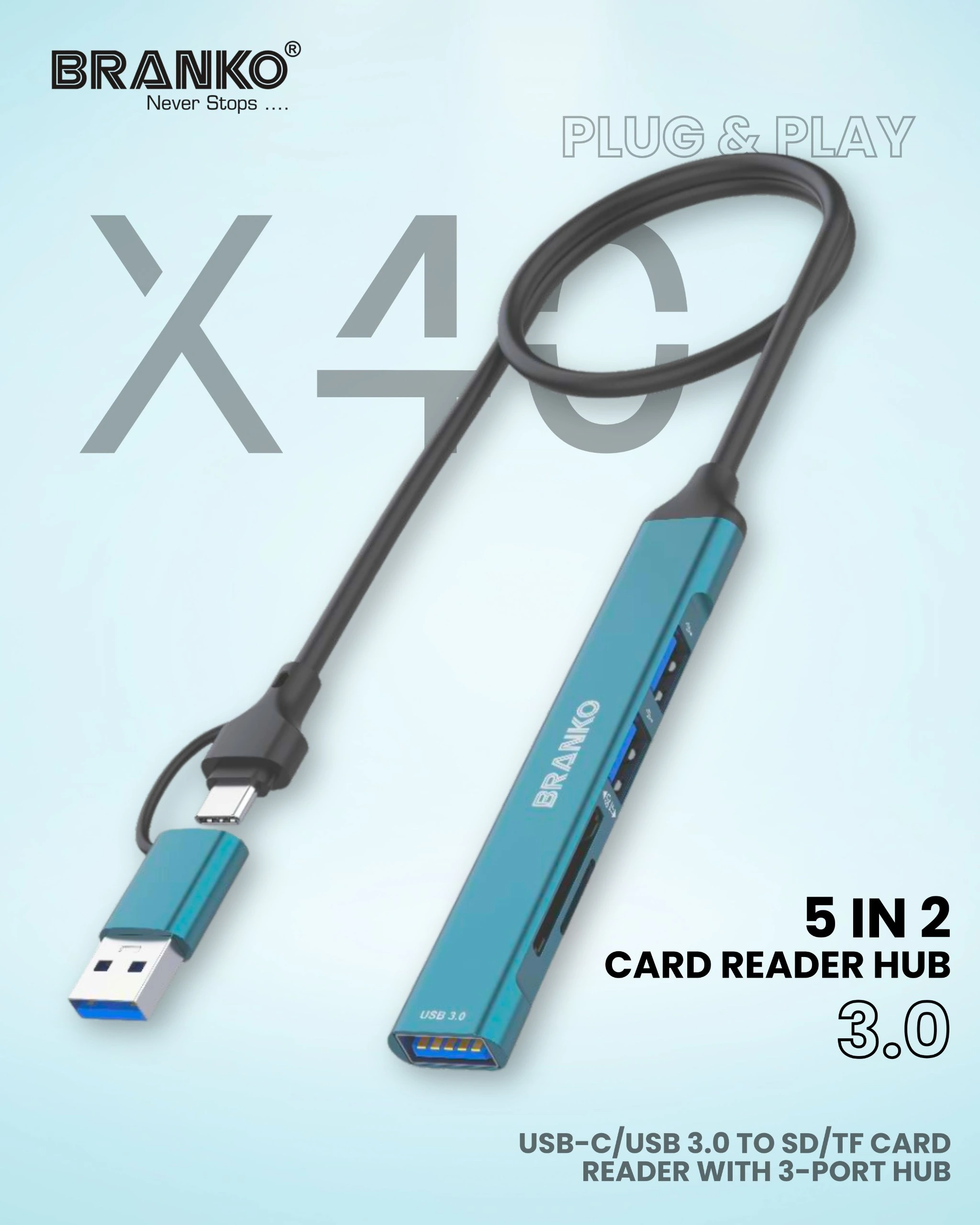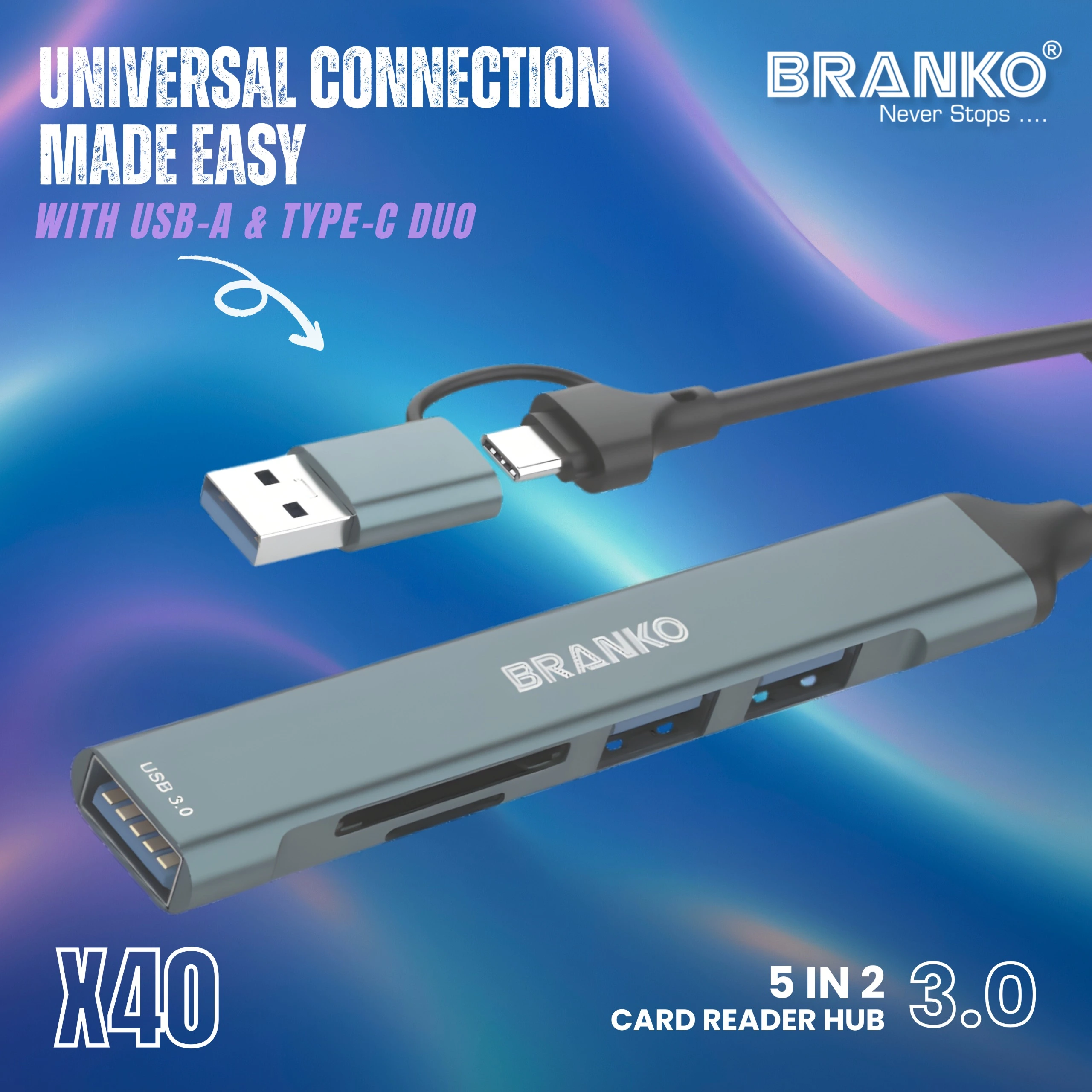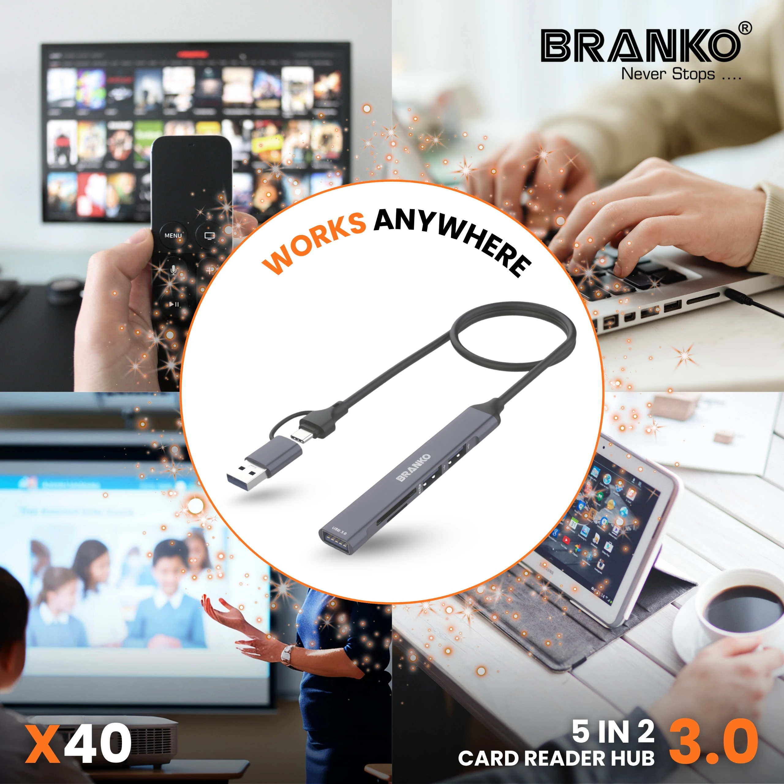 - 5-in-2 USB Hub: Branko Mport 5 USB 3.0 hub is the ultimate multitasker with a 1xUSB 3.0,2xUSB 2.0, SD Card,Microsd Card Reader.
