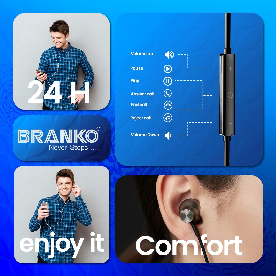 Massive 30 Hours of non-stop Playback Time with 1.5 hours of full charging. Branko wireless headphones support Type-C Charging || Built-in HD Microphone ensures Clear Call Quality 13mm Dynamic Drivers ensure Pristine Sound Quality with Deep Bass, Crisp Treble, and Clean Vocals || Snug-fit Earbuds Design & Silicon Ear tips Minimizes External Noises for...
